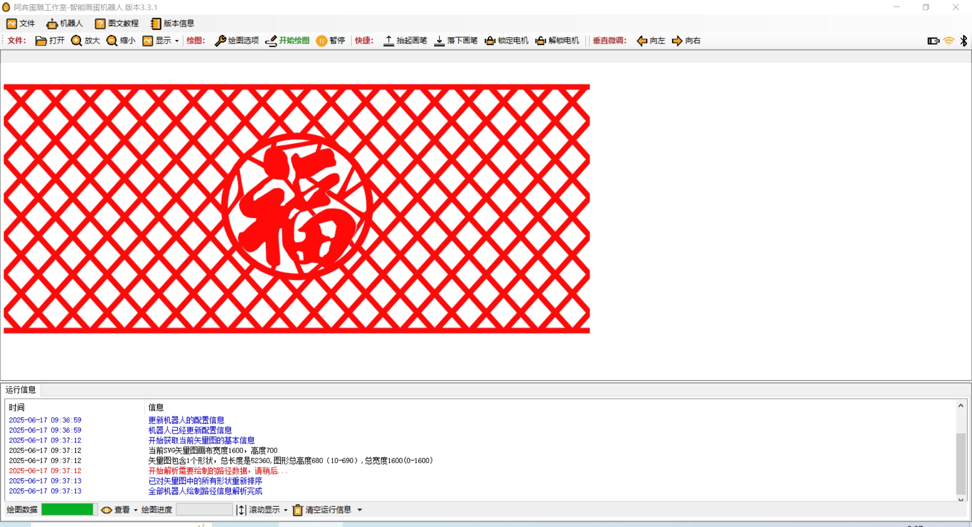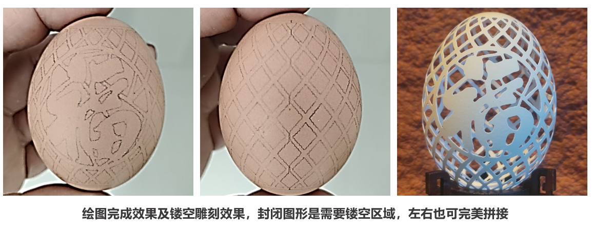 ② 运营画蛋机器人软件,从菜单选择“文件-示例-鸡蛋-福字”,打开蛋雕矢量图文件,效果如下图