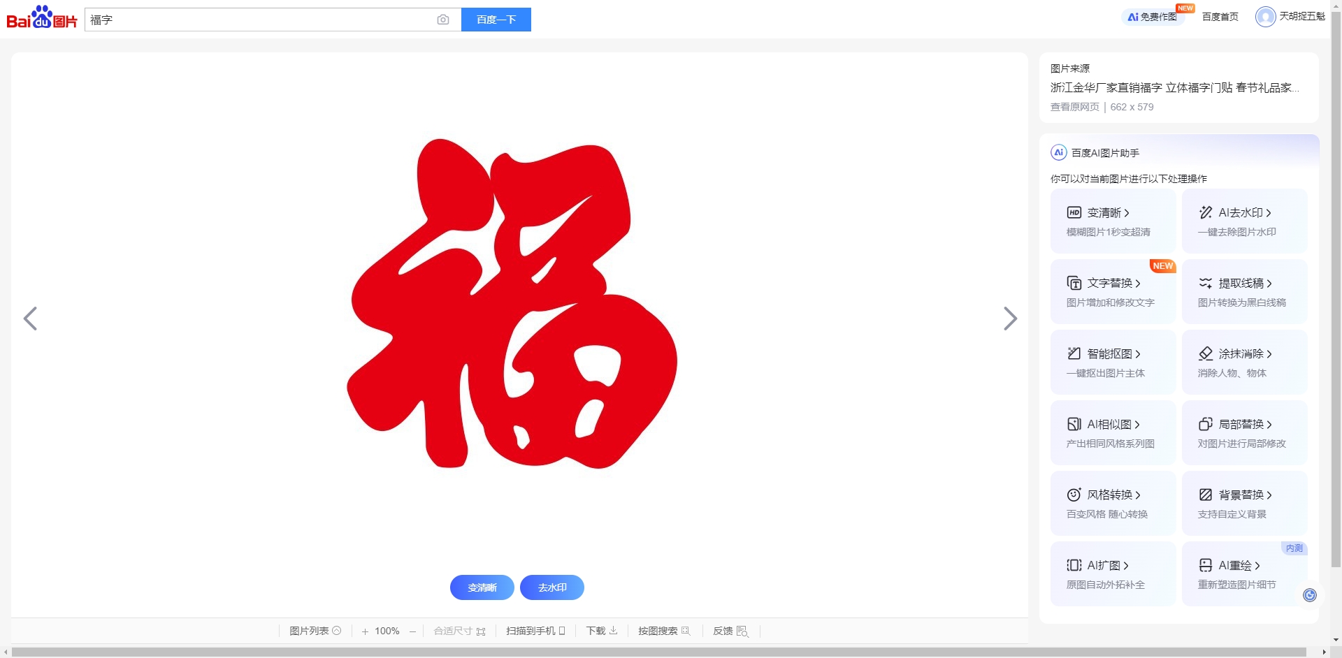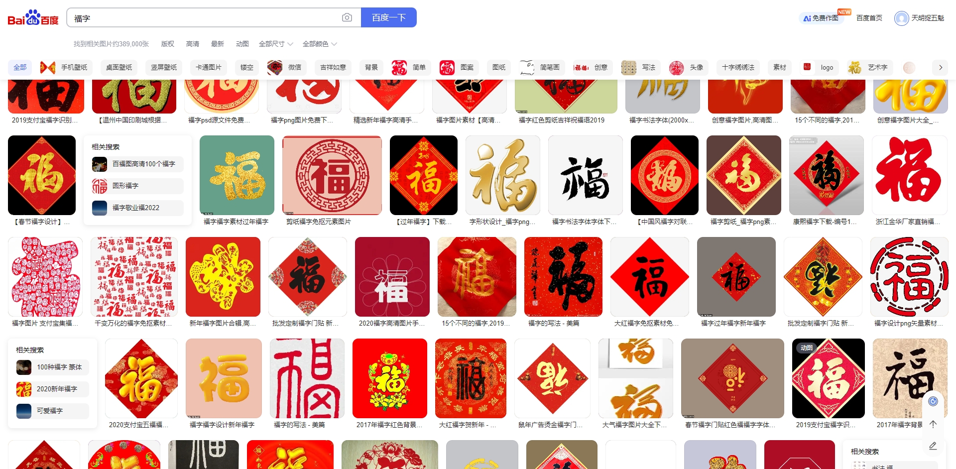 比如我们需要在蛋壳上绘制一个福字,前面提到过,Inkspace是不带中文字体的,而且即便有中文字体,可能也没有我们需要的类似书法字体。 这时我们就可以用百度图片这样的搜索引擎去查找我们需要的福字图片,如下图所示: