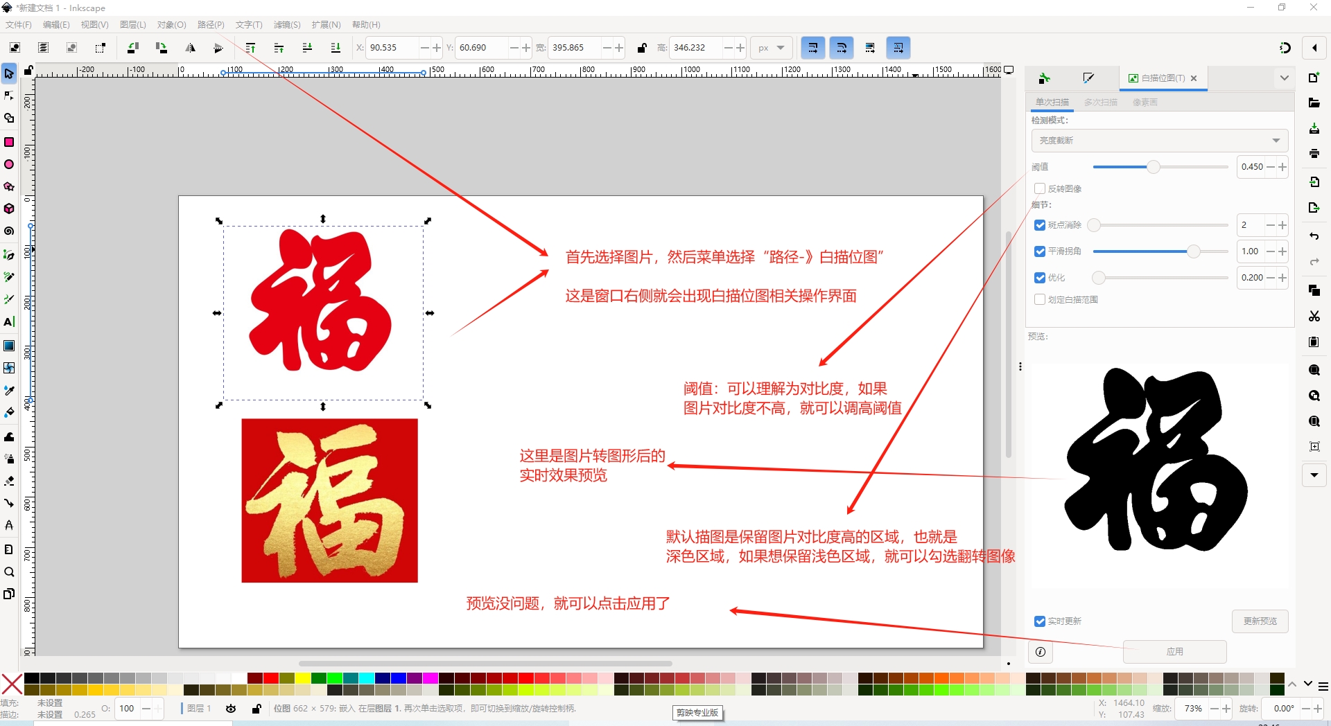 本节我们就重点介绍图片转换为图形的一些技巧,这些技巧将在我们蛋雕图案设计时经常用到,将大大提高我们蛋雕图案的设计效率。