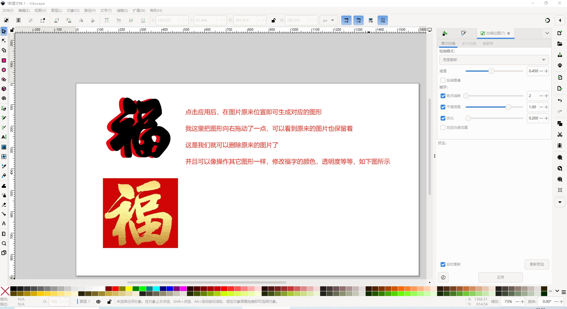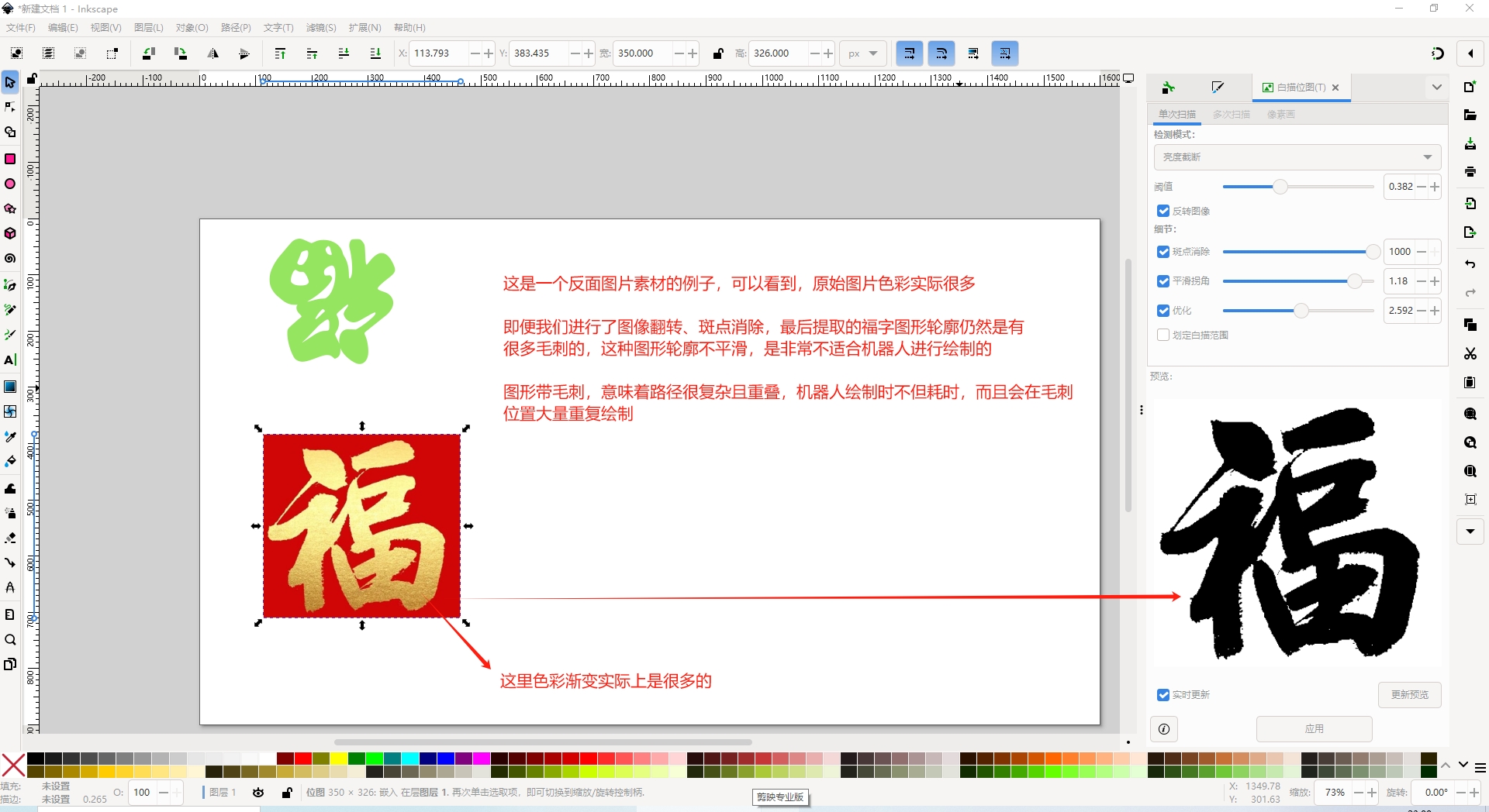 我们使用的Inkscape设计的图案是矢量图,这与我们常见的图片有很大差别。这里就需要区别图片和图形的差别,你可以理解图形是由外观轮廓组成的。