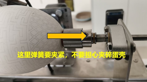 产生该问题的原因,多数是由于蛋壳固定时没有夹紧造成的,被动轴弹簧一定要夹紧,不要担心压碎蛋壳,如下图: